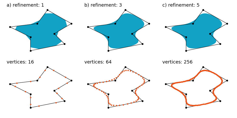 In 1974, George Chaikin presented one of the first refinement-based corner cutting algorithms to generate a curve from a given set of control points. His approach involved generating a new curve by cutting the corners off the original (based on some fixed ratio), and repeating this a bunch of times.