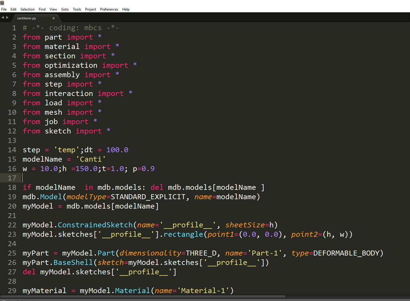 Python scripts let you accomplish tasks in Abaqus that would be time consuming or practically impossible in the GUI (Abaqus/CAE). Using a script you can automate a repetitive task, vary parameters of a simulation as part of an optimization study, extract information from large output databases.
