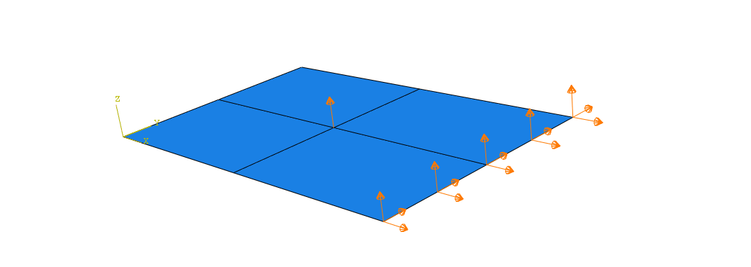 All prescribed conditions use the global coordinate system, with the exception of pressures, which are applied normal to the selected surfaces.The load and boundary condition allow to specify the coordinate system.
