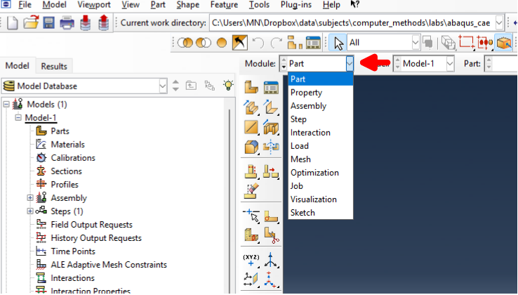 Moduł Part służy do tworzenia geometrii modelu. Można w nim rysować części 2D i 3D lub importować je z innych programów CAD. Umożliwia także definiowanie jednostek i struktur elementów skończonych.