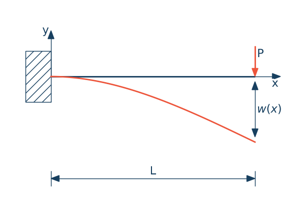 $$\cfrac{d^2w(x)}{dx^2} = -\cfrac{ P(L-x)}{EI}$$Rozwiązanie analityczne jest następujące