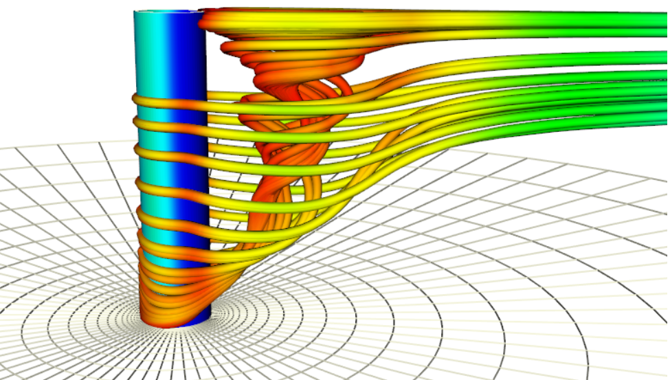 • streamline visualization can be used to visualize flow fields (e.g., airflow around an object)