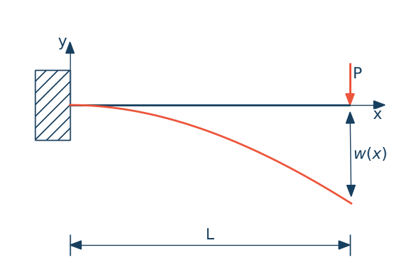 $$w(x) = \cfrac{-6L\,P\,x^2}{E\,b\,h^3} + \cfrac{2P\,x^3}{Ebh^3}$$from sympy import Function, dsolve, Derivative