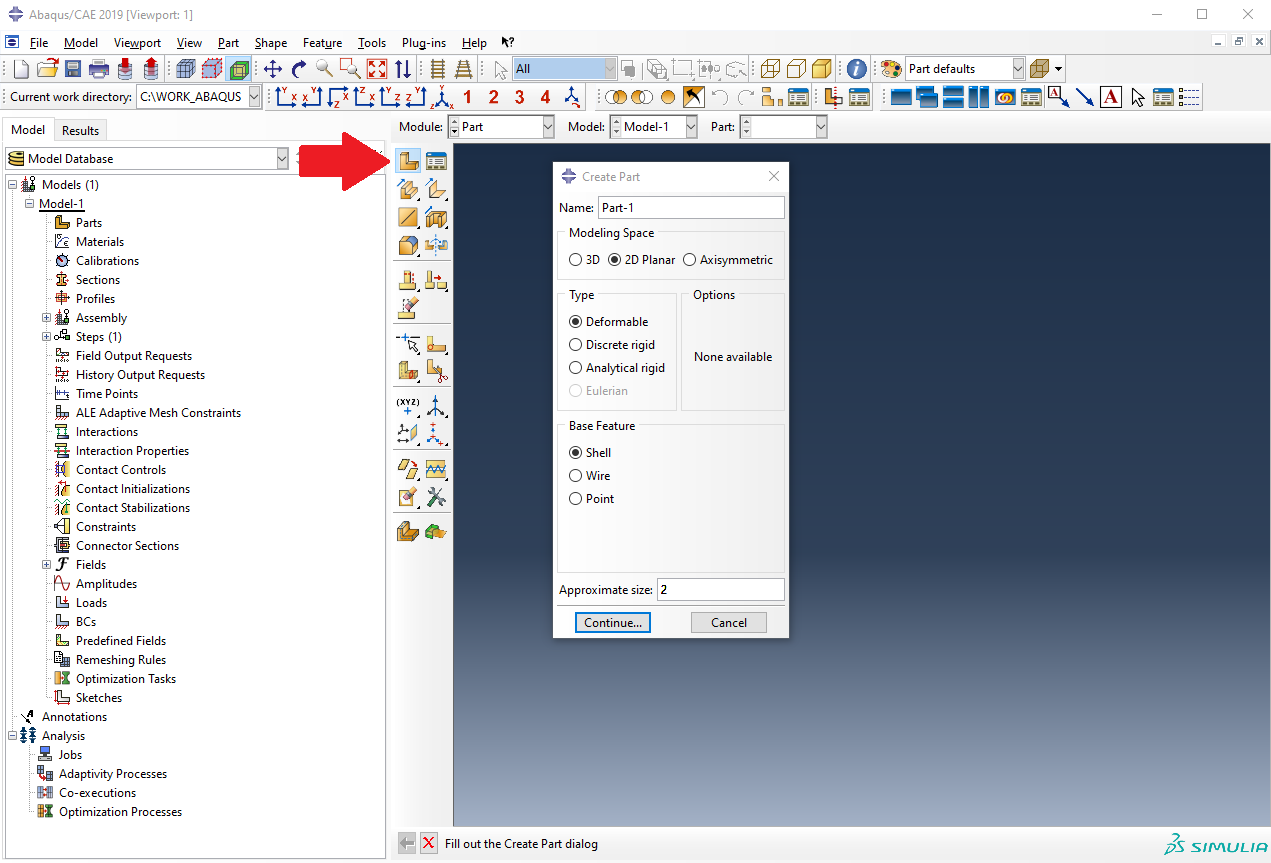 Klikamy "Create Part" i wybieramy ustawienia zgodnie z rysunkiem i klikamy "Continue".