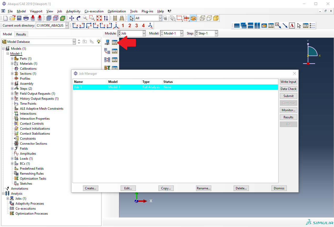 Klikamy "Job Manager". W okienku klikamy "Submit". Po zakończeniu obliczeń klikamy "Results".
