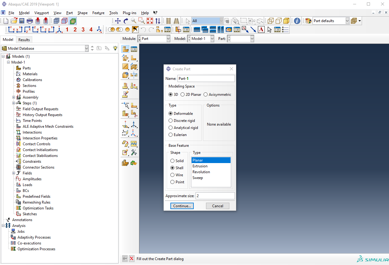 Klikamy "Create Part" i wybieramy ustawienia zgodnie z rysunkiem. Następnie klikamy "Continue".