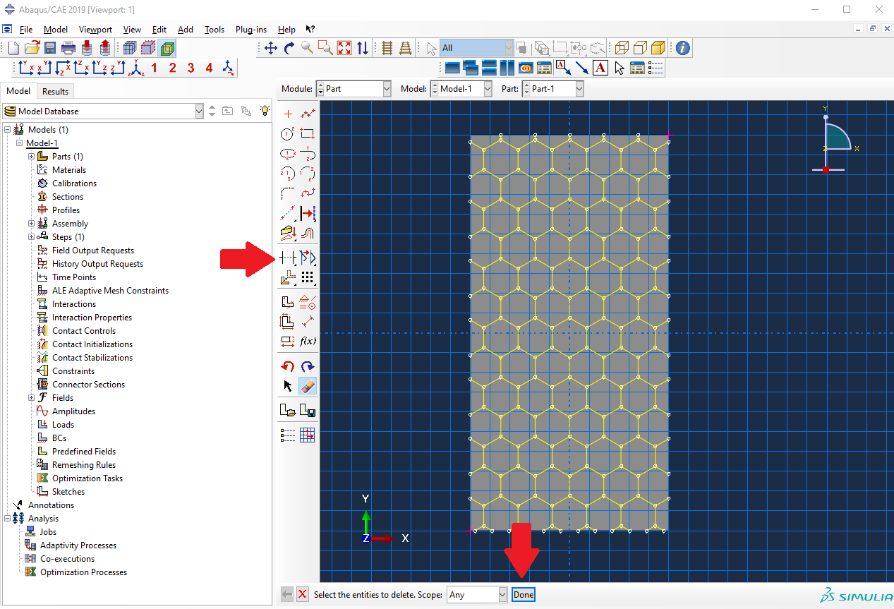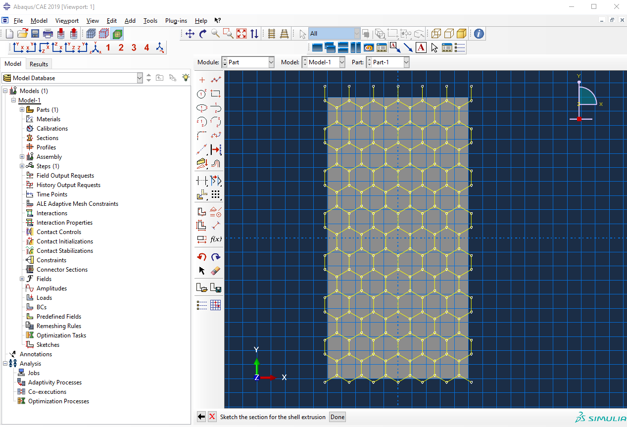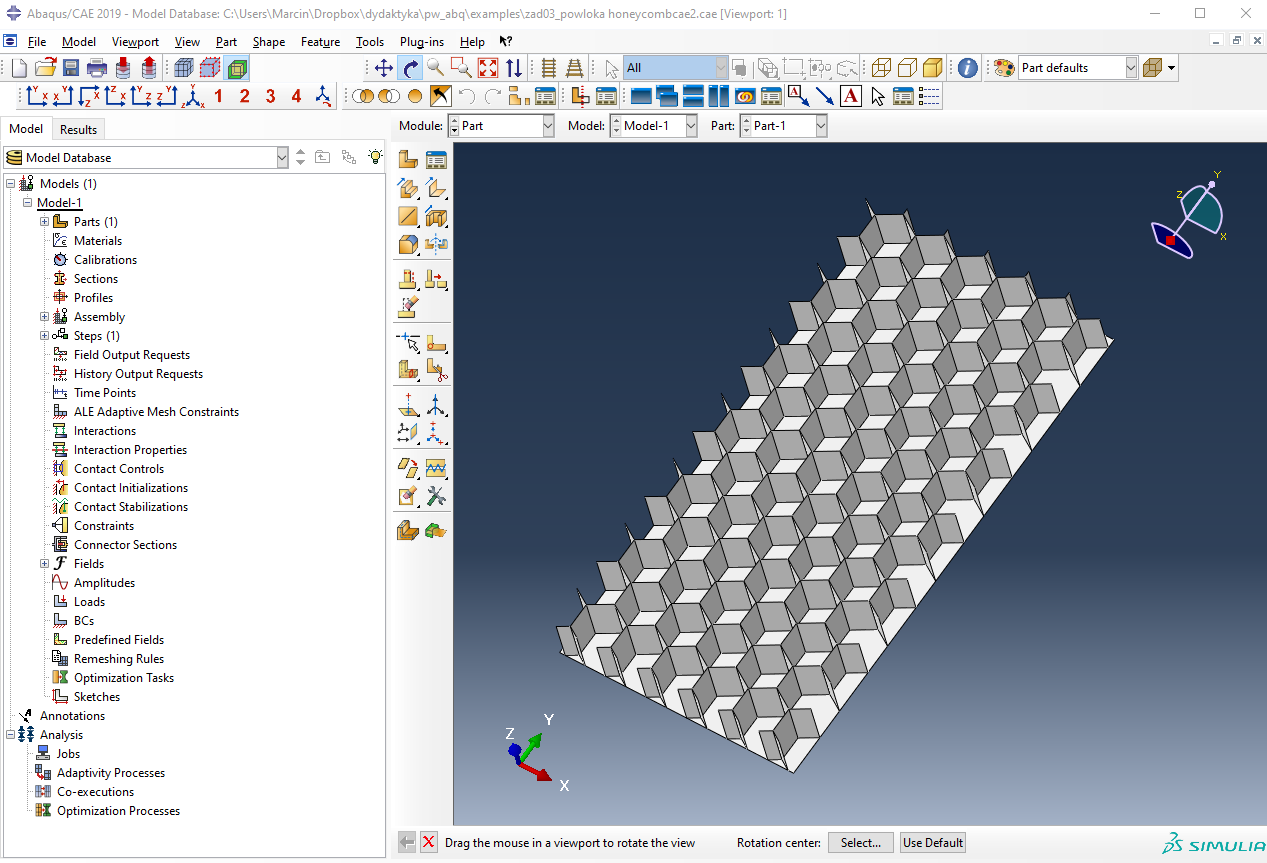 W module "Sketch" rysujemy geometrię typu plaster miodu. Z uwagi na ograniczenia wersji studenckiej proszę przyjąć większe komórki tak aby było ich około 10. Nie trzeba pozycjonować tego symetrycznie względem prostokąta.