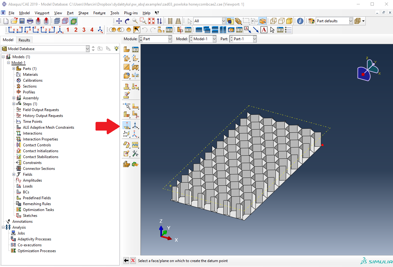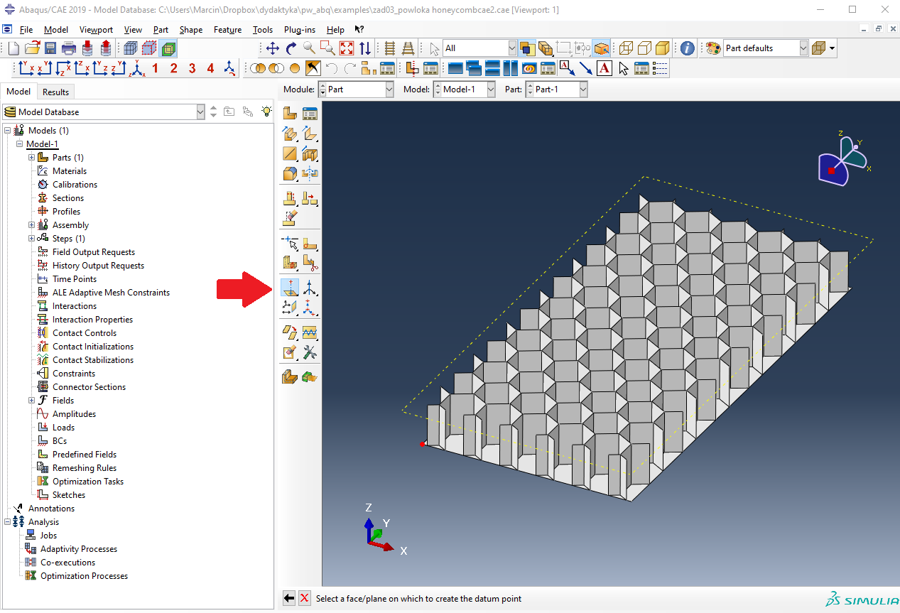 Klikamy "Create Datum Point: Project Point On Face/Plane" i zaznaczamy wierzchołek powłoki zgodnie z rysunkiem.
