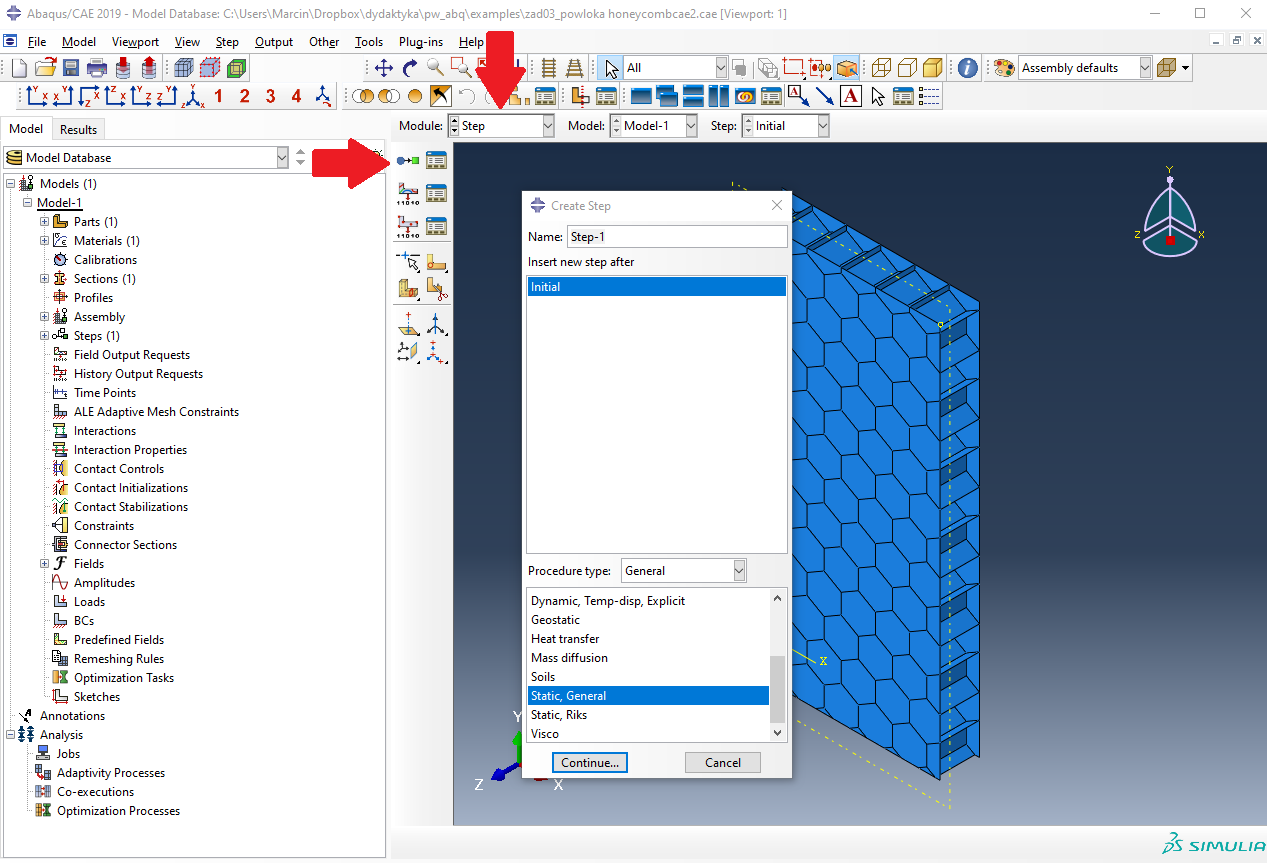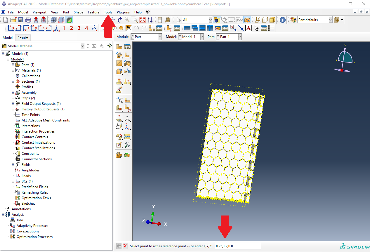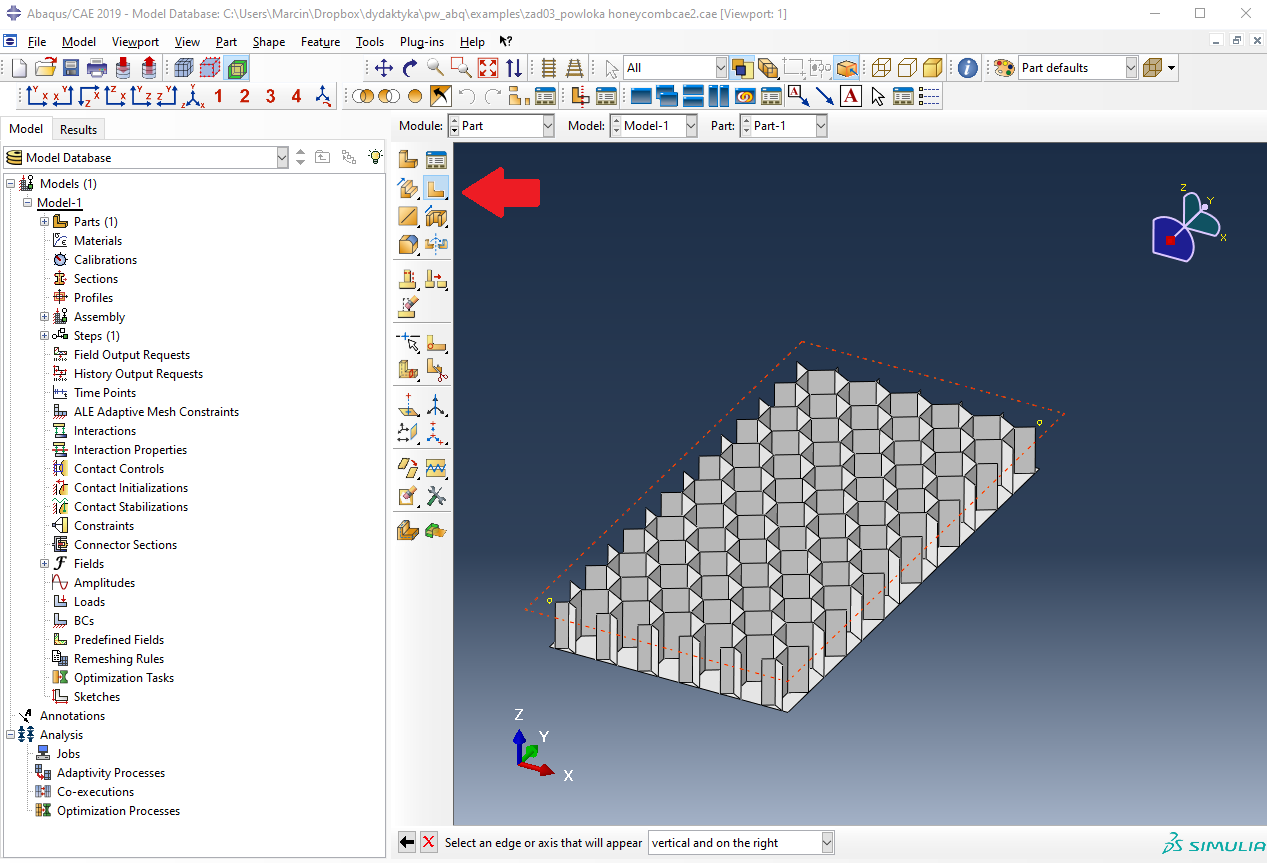 Przechodzimy do modułu "Mesh". Używając funkcji "Seed Part Instance", "Assign Mesh Control" oraz "Mesh Part Instance" generujemy siatkę.