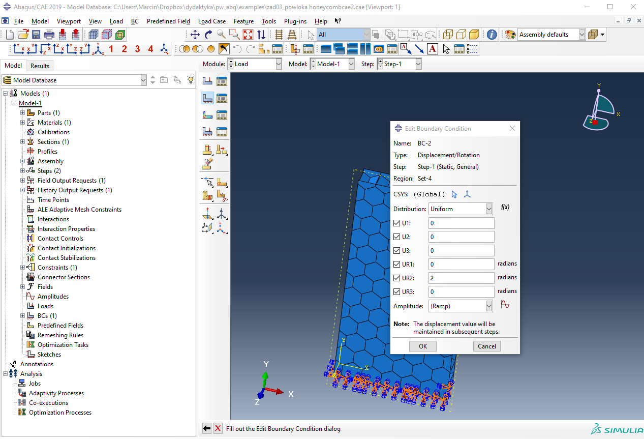 Przechodzimy do modułu "Load". Klikamy "Create Boundary Condition" i wybieramy ustawienie zgodnie z rysunkiem.