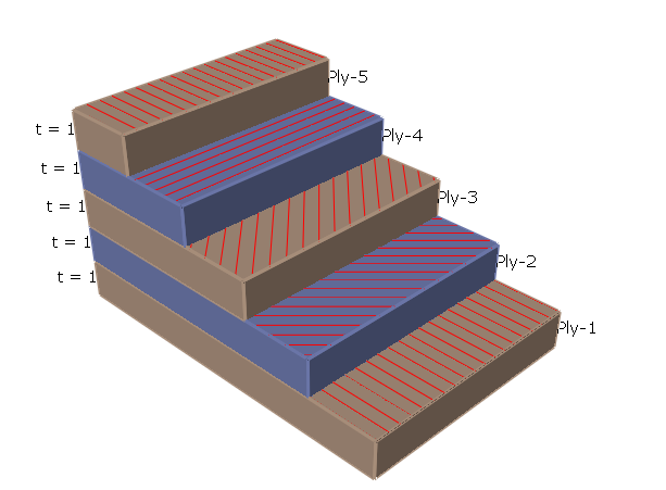 Każda warstwa ma grubość 1mm i jest obrócona względem osi $z$ o zadany kąt. UWAGA - jeżeli analizujemy układ warstwowy to nie musimy dodatkowo tworzyć sekcji i przypisywać ją do geometrii.