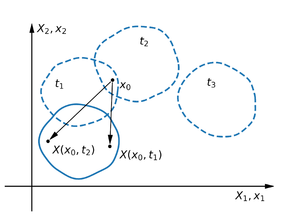 $$\X = \X(\x,t).$$Opis ten używany jest głównie w mechanice płynów.