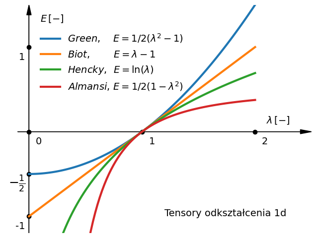• Green dla $m=1: \qquad$ $\E = \cfrac{1}{2}\left(\U^{2}-\I\right)$