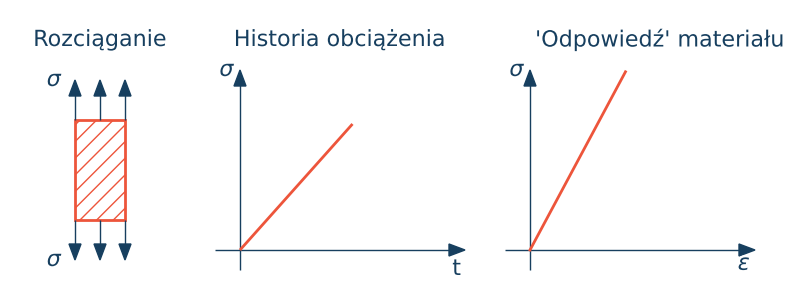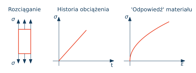 Zależność naprężenia od odkształcenia dla jednowymiarowego zagadnienia rozciągania pręta.