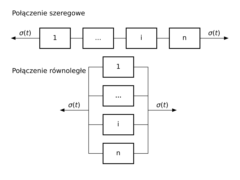 • równanie równowagi $\Rightarrow \sigma = \sum\limits_{i=1}^{n}\sigma_i$