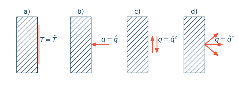 $$-q_in_i\; ({}=\lambda_{ij}T_{,j}n_i) = \hat q + q^c(T) + q^r(T)\quad \text{dla} \quad \x\in d\Omega_q$$3) konwekcja: