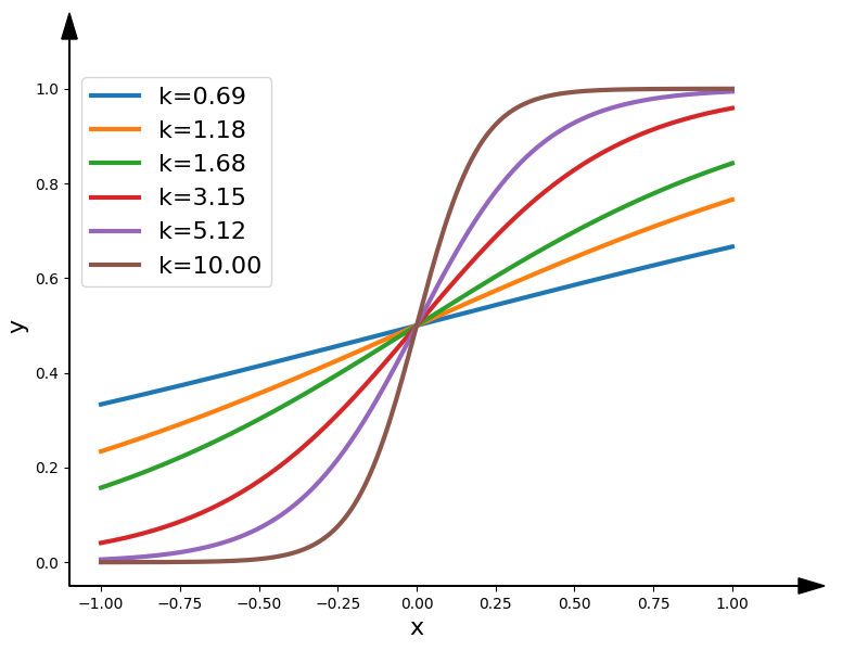 where $f(x)$ is the output value of the function, $x$ is the input value, $k$ is a constant that controls the slope of the curve.