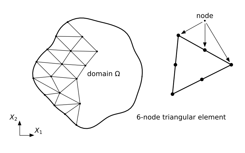 Discretization The first step is to discretize the continuous domain (the object or structure under consideration) into smaller, finite elements. These elements can be triangles, quadrilaterals, tetrahedra, or other shapes depending on the dimensionality of the problem (2D or 3D). Nodes are placed at the vertices of these elements.