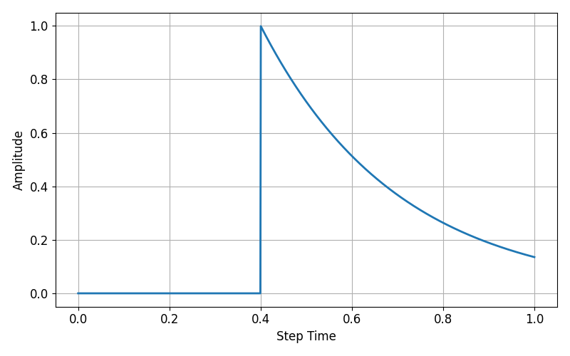 $$a = A_0 + A\exp\left( -(t-t_0)/t_d\right) \quad \text{for} \quad t \geq t 0$$ $$a = A_0 \quad \text{for} \quad t < t_0$$where $A_0$, $A$, $t_0$ and $t_d$ are user-defined constants.