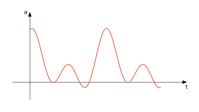 $$a = A_0 + A\sin \omega_1 (t-t_0) \sin \omega_2 (t-t_0) \quad \text{for} \quad t > t_0$$ $$a = A_0 \quad \text{for} \quad t < t_0$$where $A_0$, $A$, $t_0$, $\omega_1$, and $\omega_2$ are user-defined constants.