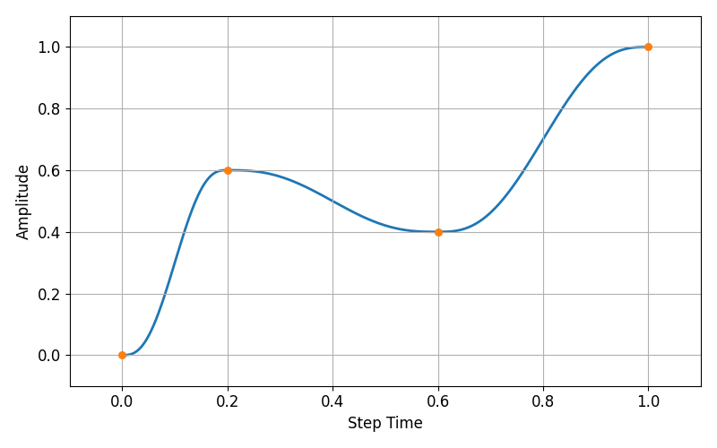 Amplitudes defined as functions of time can be given in terms of step time (default) or in terms of total time.