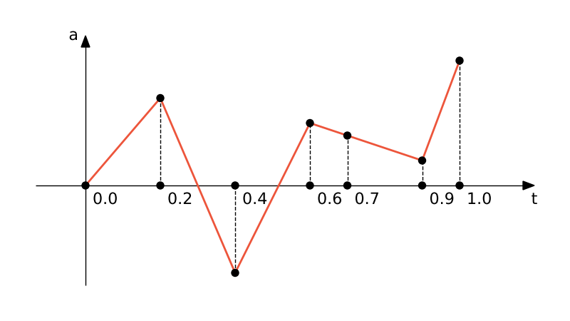 defines the amplitude, $a$, between two consecutive data points $(t_i, A_i)$ and $t_{i+1}, A_{i+1}$ as