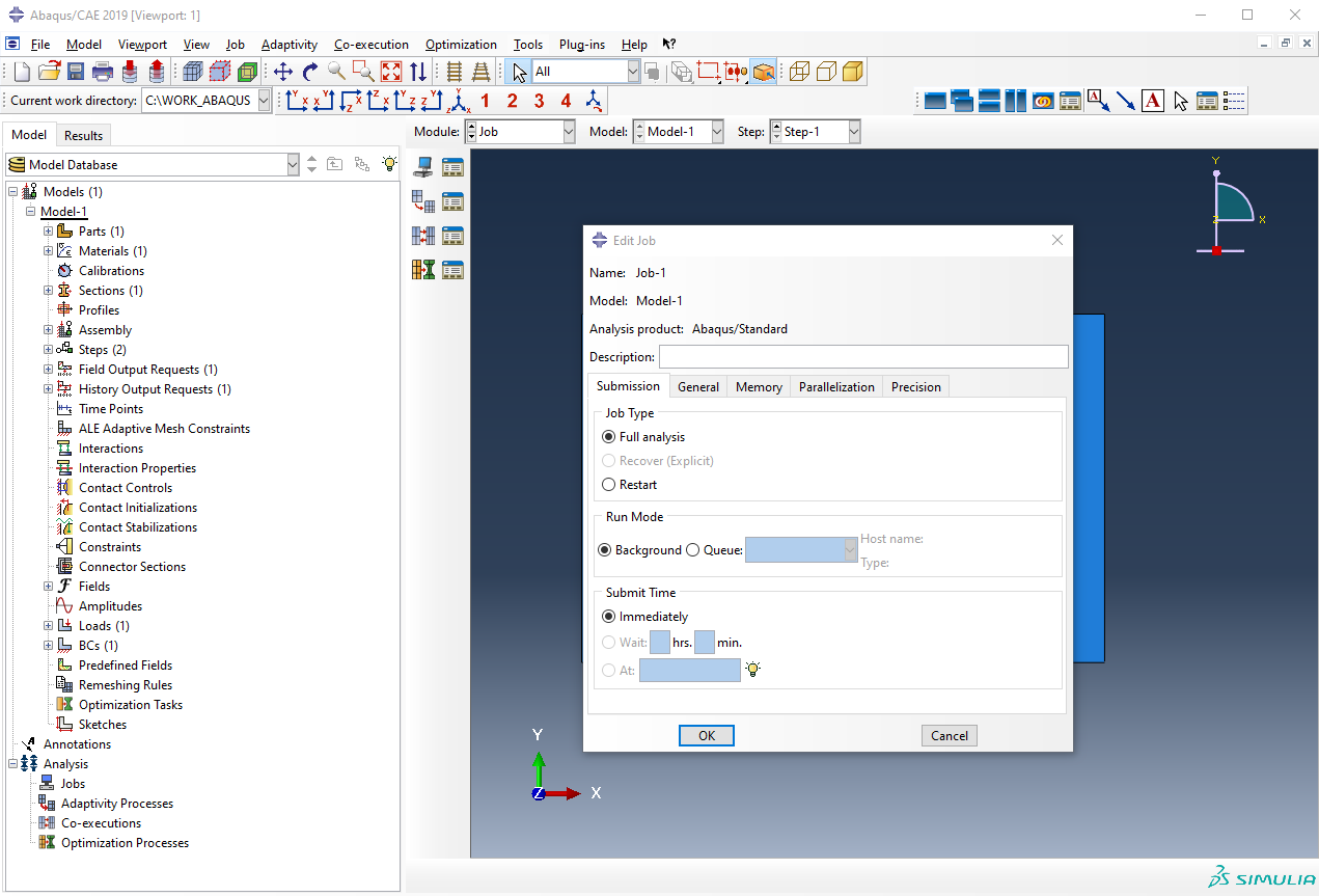 Klikamy "Job Manager". W okienku klikamy "Submit". Po zakończeniu obliczeń klikamy "Results".