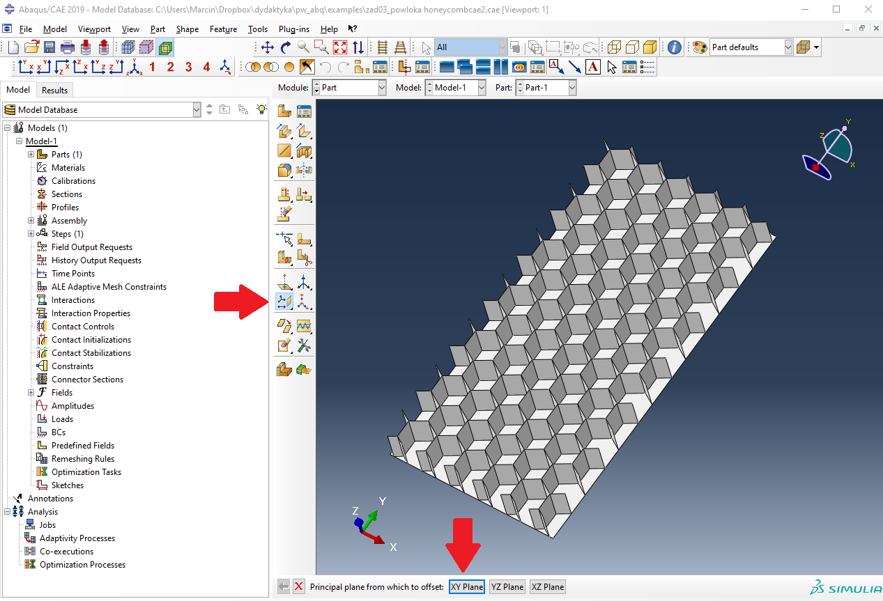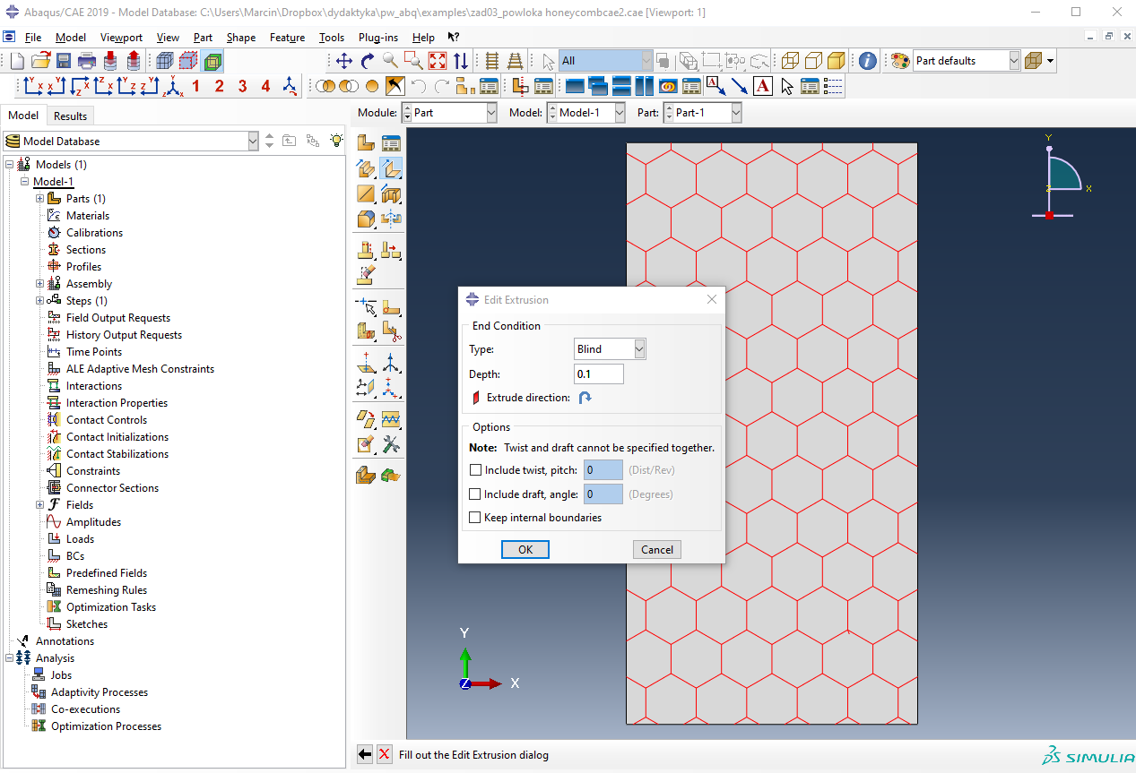 Wpisujemy "Offset" równy 0.1, tak aby utworzona płaszczyzna była nad wyciągnięta strukturą plastra miodu.