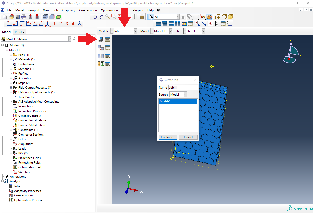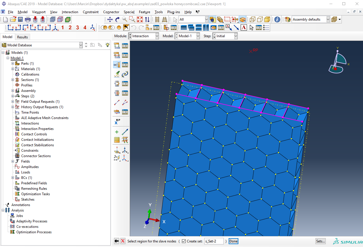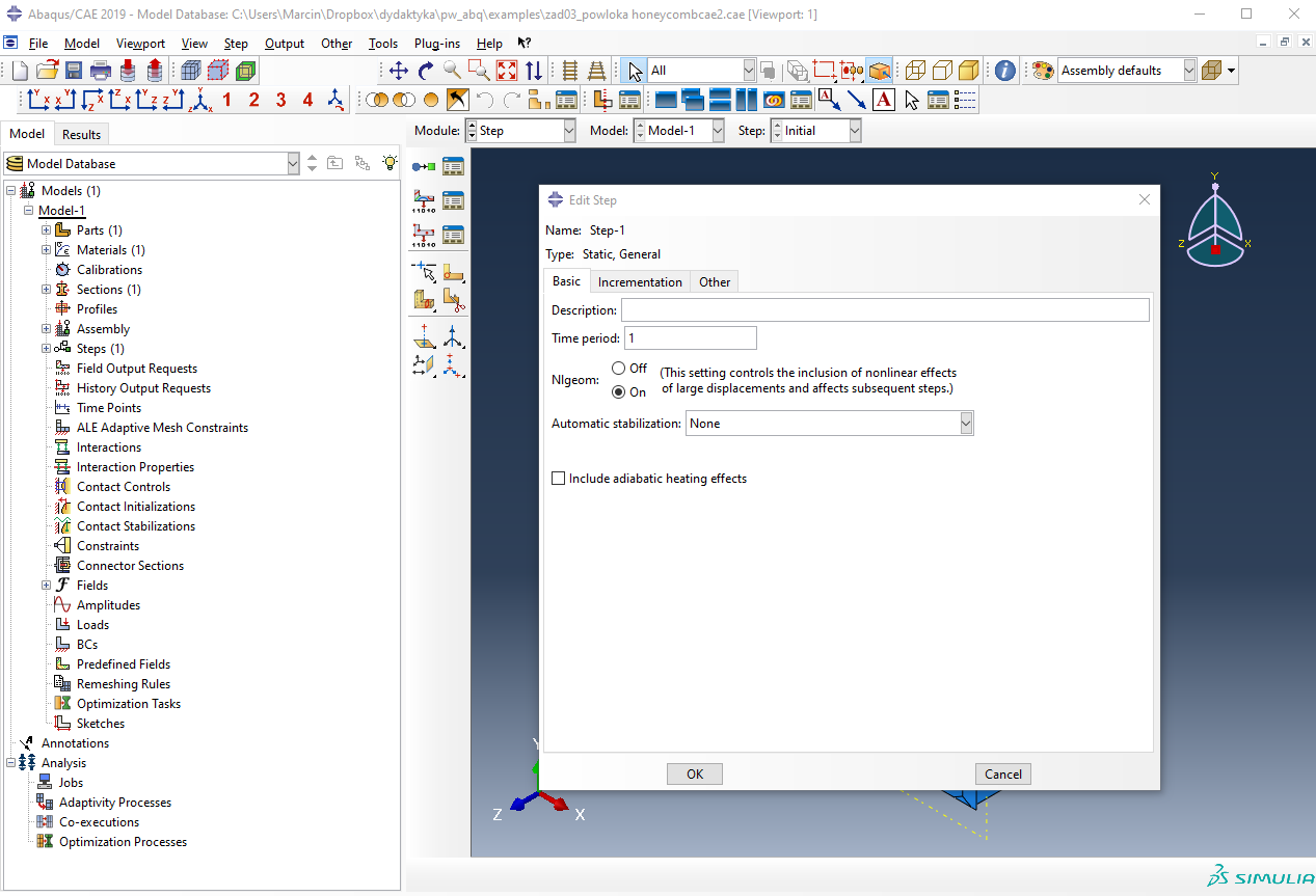 Przechodzimy do modułu "Mesh". Używając funkcji "Seed Part Instance", "Assign Mesh Control" oraz "Mesh Part Instance" generujemy siatkę.