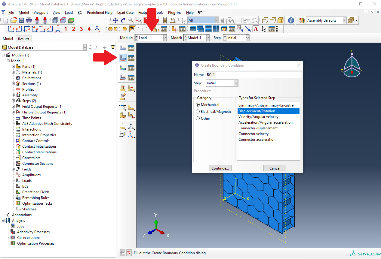 Przechodzimy do modułu "Load". Klikamy "Create Boundary Condition" i wybieramy ustawienie zgodnie z rysunkiem.