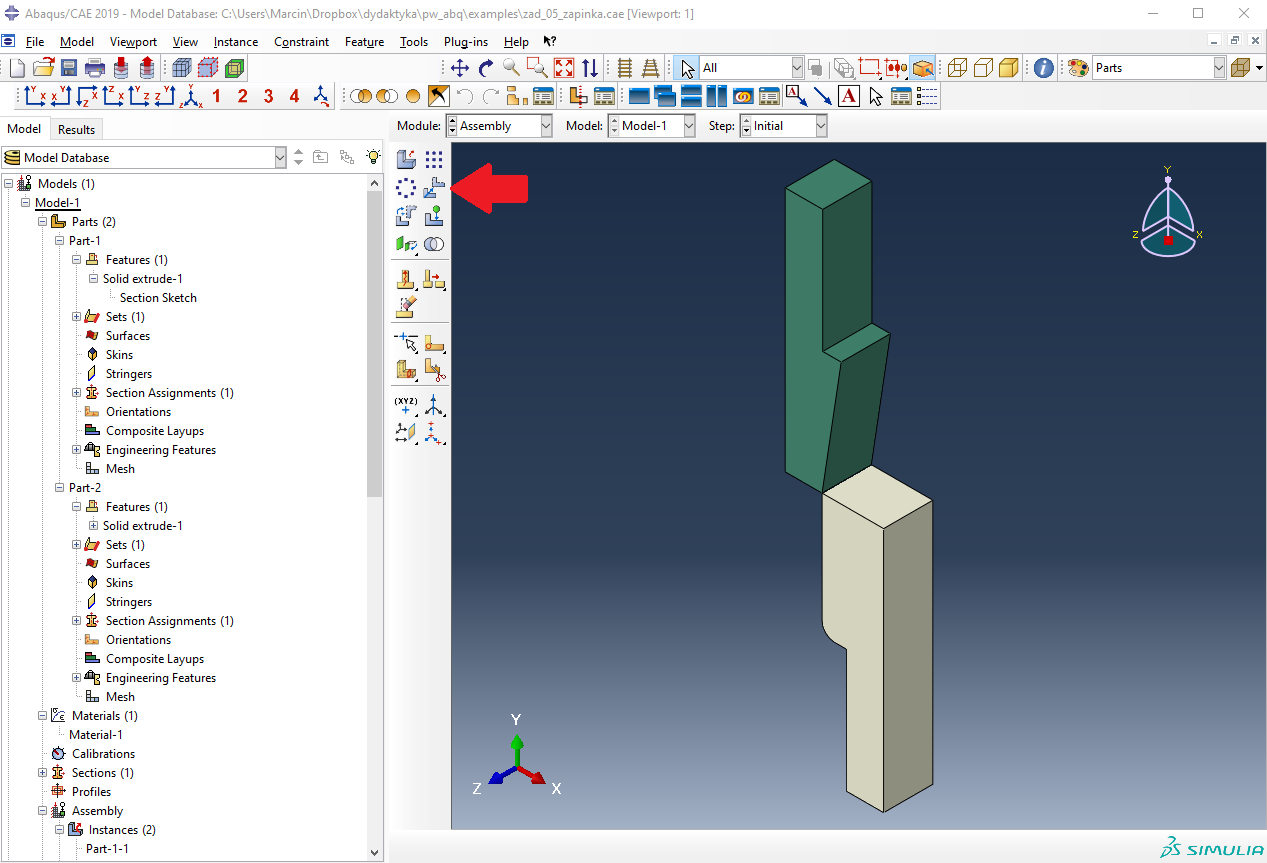Tworzymy sekcję zgodnie z ustawieniami na rysunku i przypisujemy ją do dwóch stworzonych partów.