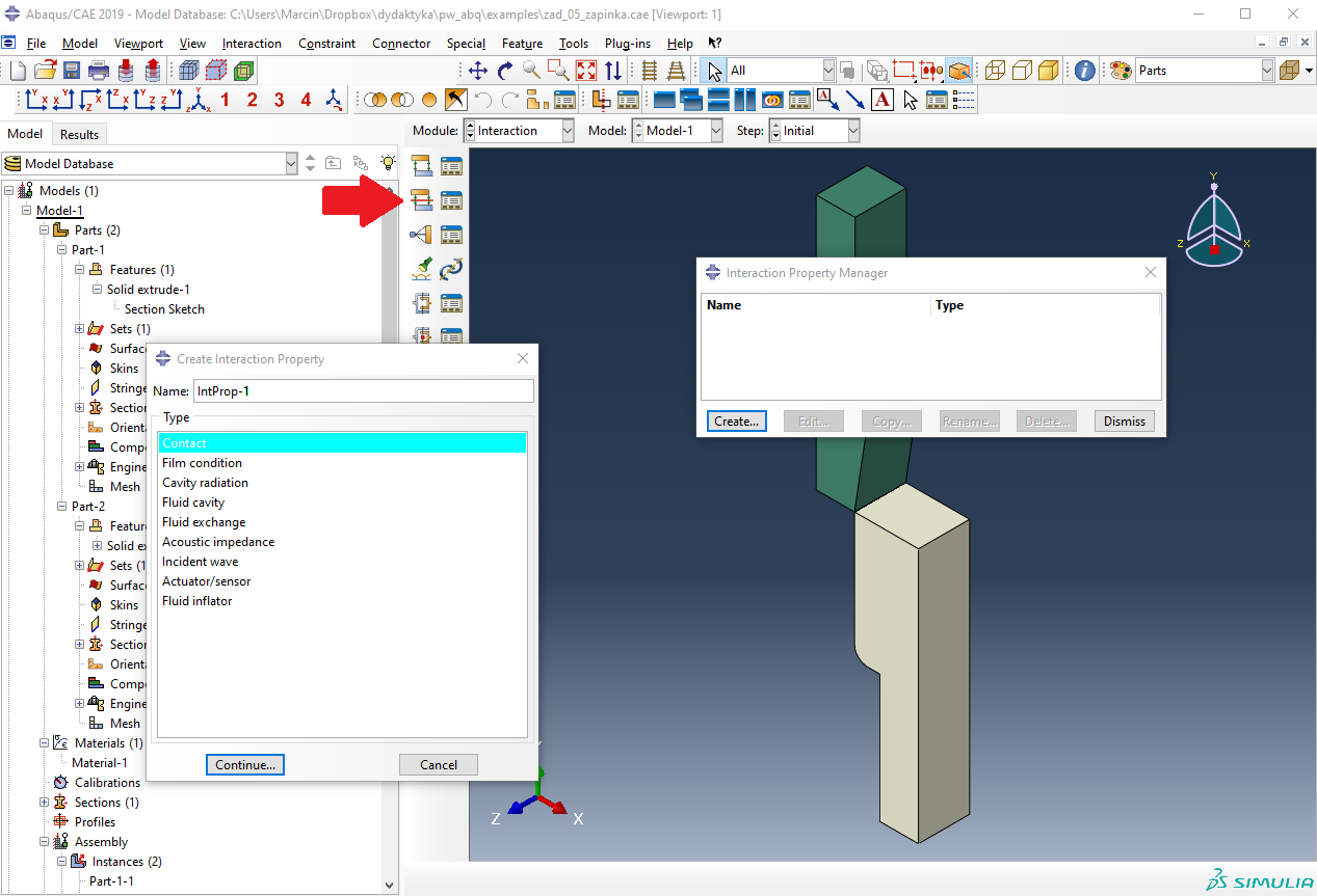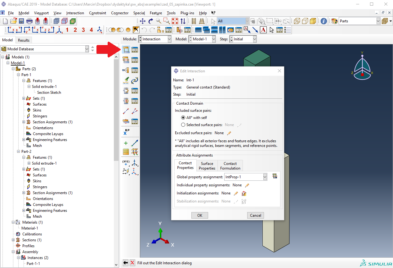 Klikamy "Create Interaction", wybieramy "General Contact (Standard)" ustawiamy parametry zgodnie z rysunkiem.