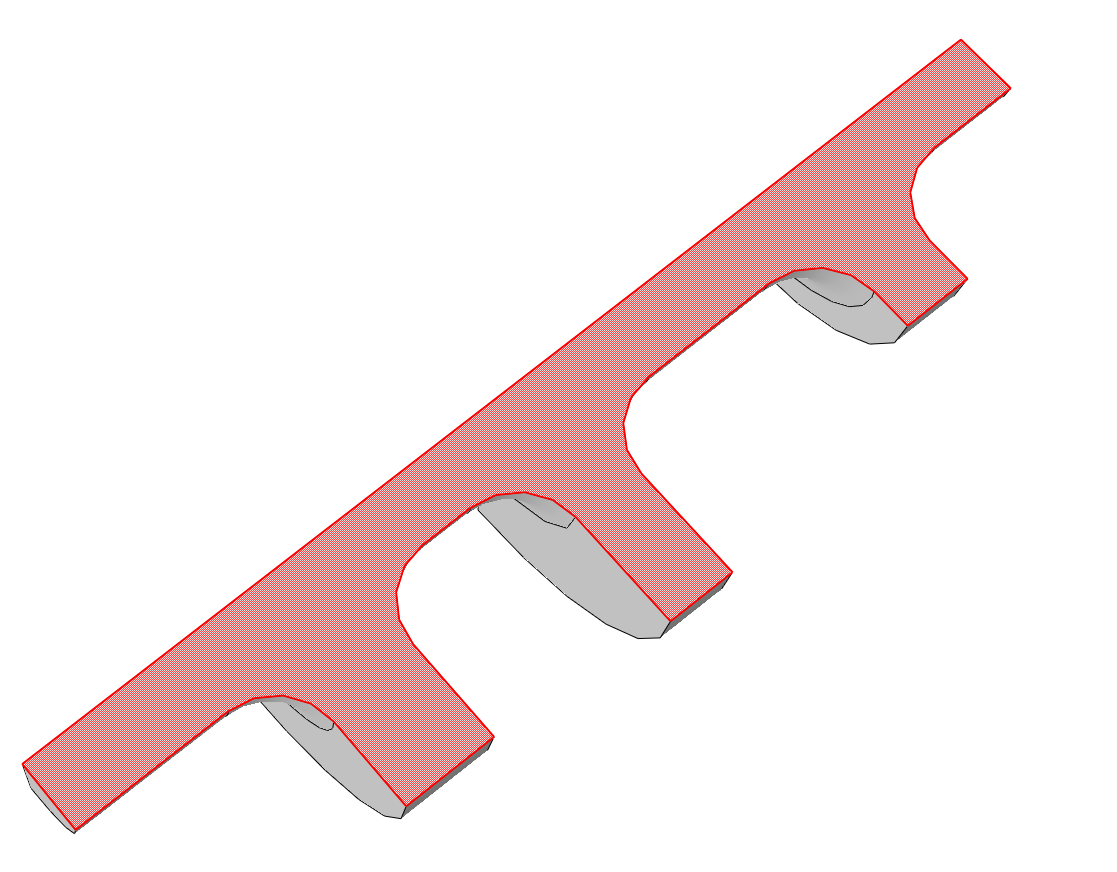 Osiowosymetryczna geometria. Kolorem czerwonym został zaznaczony fragment który, należy narysować w module "Sketch".