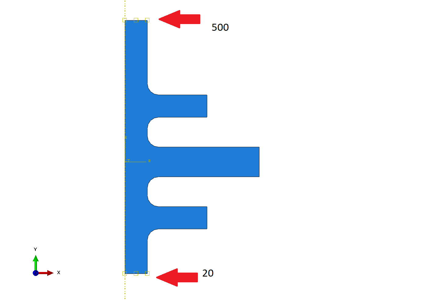 • Przechodzimy do modułu Load. Klikamy Create Boundary Condition. Wybieramy "Step-1" "Category: Other" i z listy wybieramy "Temperature". Ustawiamy temperaturę na dolnej powierzchni (Fig. 2) równą 20[$^\circ$C]. Powtarzamy tą czynności dla powierzchni górnej z tą różnicą, że w tym przypadku temperatura wynosi 500[$^\circ$C].