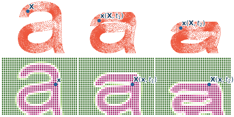 $$\X = \X(\x,t).$$Opis ten używany jest głównie w mechanice płynów.