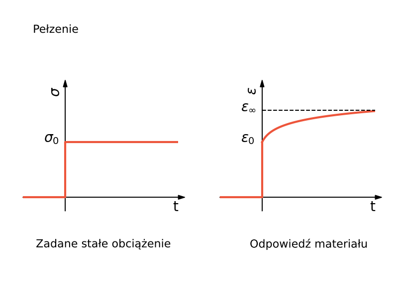 $$\sigma(t) = \eta\dot{\varepsilon}(t)$$pełzanie: $\varepsilon(t) = \cfrac{\sigma_0}{\eta}t + \varepsilon(0)$