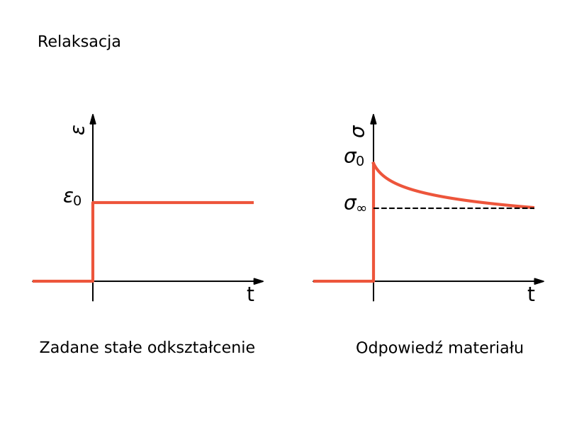 relaksacja $\sigma(t) = \sigma(0) \exp\left( -\cfrac{E}{\eta}t\right)$